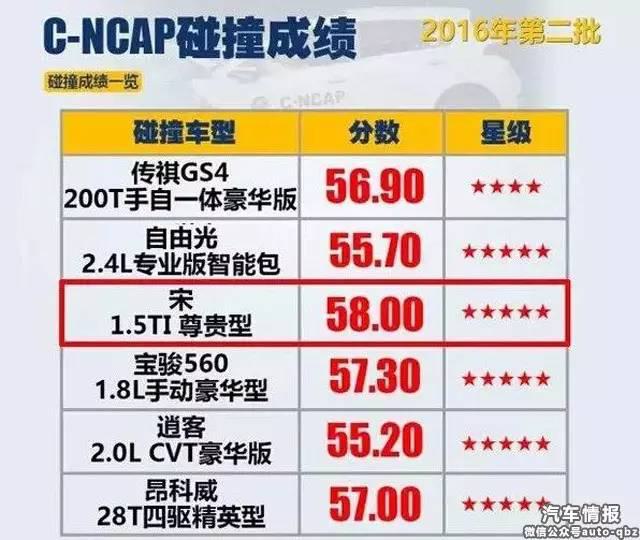 C-NCAP碰撞試驗(yàn)絕對(duì)算是汽車界的高考了。特別是2015年C-NCAP改版之后,標(biāo)準(zhǔn)更加嚴(yán)苛,成績(jī)含金量更高。2016年度第二批車型的C-NCAP碰撞試驗(yàn)結(jié)果公布,比亞迪宋以58分(總分61分)的優(yōu)異成績(jī)榮膺新C-NCAP五星安全認(rèn)證。
