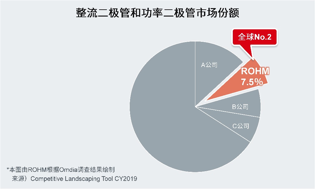圖1. 羅姆在整流二極管和功率二極管領(lǐng)域的市場份額