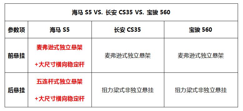 在動力方面,海馬S5與長安CS35能提供16L/1.5T的選擇,而寶駿560則能提供1.8L/1.5T的配置。