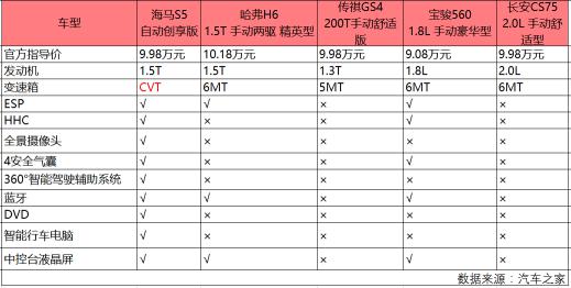 配置上,海馬S5更是大寫的富裕,以售價9.98萬元的海馬S5自動創(chuàng)享版為例,搭載智能行車電腦、JOY-TOUCH影音娛樂系統(tǒng)、GPS、7寸中控液晶大屏、隨速音量調(diào)節(jié)、 360°智能駕駛輔助系統(tǒng)、真皮多功能方向盤、ABS+EBD、HHC坡道起步輔助、ESP車身電子穩(wěn)定系統(tǒng)、倒車?yán)走_(dá)、4安全氣囊控制等多項科技安全配置,與價格差不多的哈弗H6、長安CS75相比,優(yōu)勢地位一目了然。