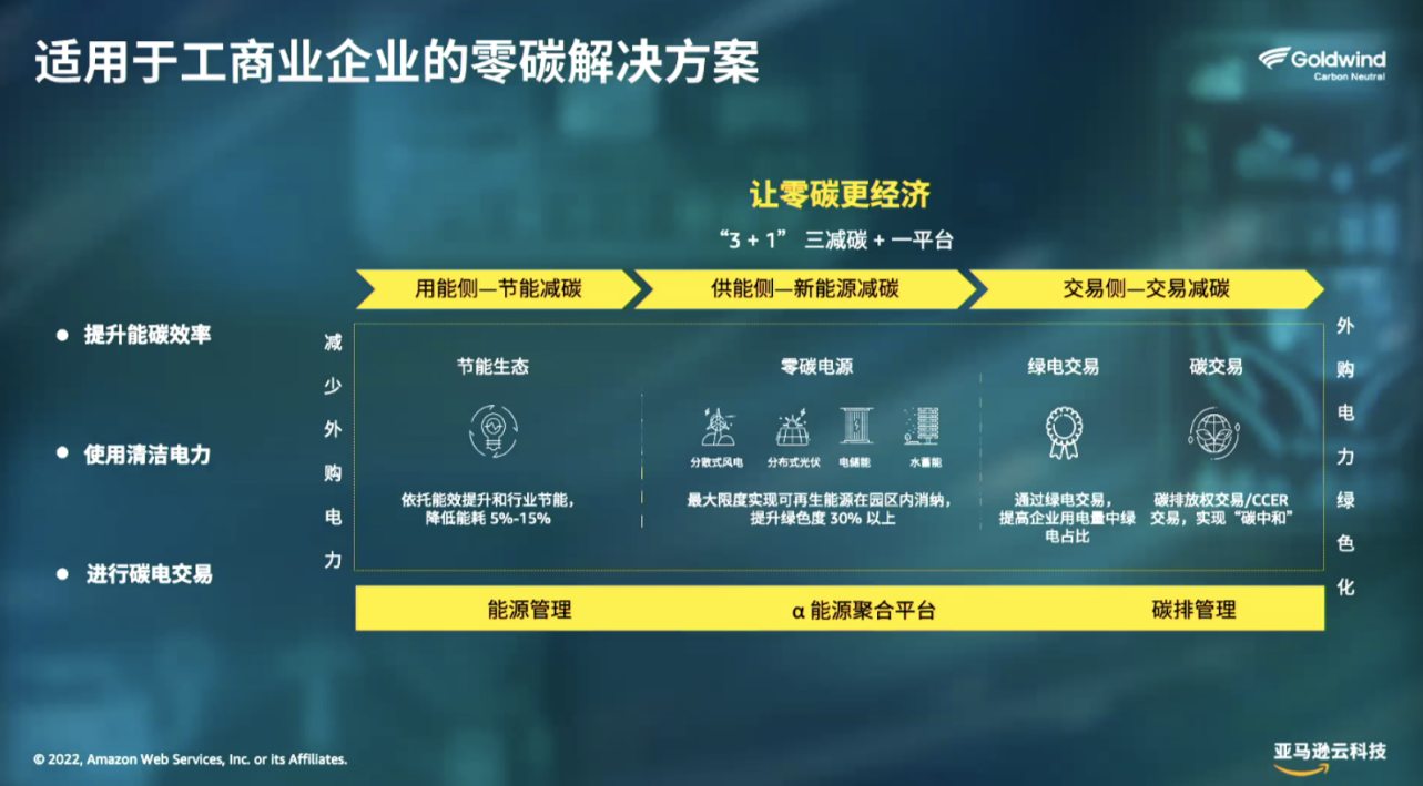 “跟亞馬遜云科技合作有五六年了,金風(fēng)零碳也在思考比特和瓦特的連接是什么。實(shí)際上比特更擅長(zhǎng)處理在大量數(shù)據(jù)下的高頻系統(tǒng)的尋優(yōu)?!?