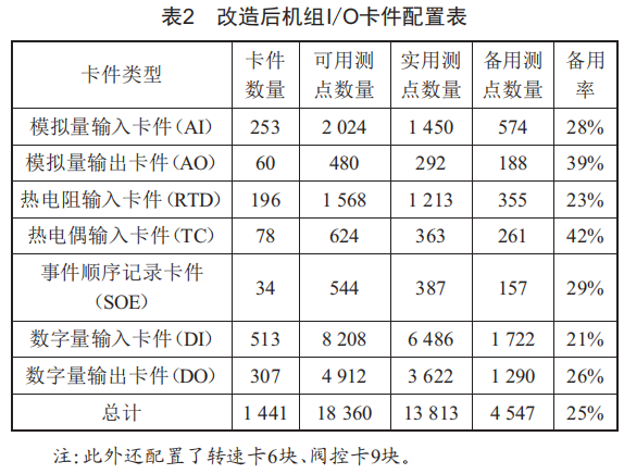 機(jī)組I/O卡件配置情況如表2所示,卡件通道備用率均為20%以上,遠(yuǎn)超業(yè)內(nèi)要求的15%。