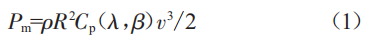 式中:Pm為輸出功率:p為空氣密度:R為獎(jiǎng)葉半徑:Cp為風(fēng)能利用系數(shù):入為葉尖速比:8為獎(jiǎng)距角:,為風(fēng)速。