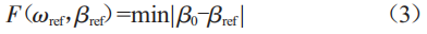 3)通過Matlab編程獲得在不等式約束條件下的全局最優(yōu)解(oref,8ref),記錄下不同輸出功率點(diǎn)Ps、不同電網(wǎng)頻率點(diǎn)fn下獎(jiǎng)距角參考值9(s,n)的對(duì)應(yīng)關(guān)系。