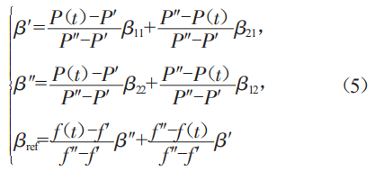 2)采用雙線性插值法計(jì)算1時(shí)刻風(fēng)電機(jī)組獎(jiǎng)距角參考值8ref,計(jì)算公式如下: