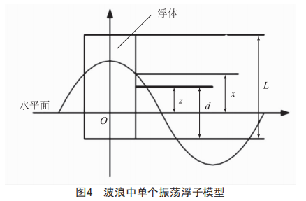 建立如圖4所示模型,對浮子進(jìn)行受力分析。圖中,d為振蕩浮子的初始吃水深度(m):x為波面到水平面的距離(m):z為振蕩浮子的吃水面到水平面的距離(m):L為浮子高(m)。