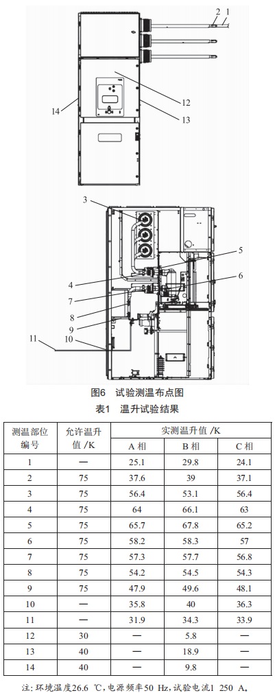 試驗(yàn)表明,在銅排用量大大減少的情況下,此設(shè)計(jì)仍通過(guò)國(guó)家標(biāo)準(zhǔn)要求的溫升試驗(yàn)。
