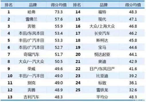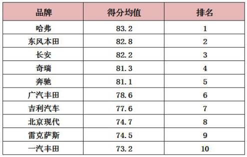 12月3日,“2016汽車經(jīng)銷商對(duì)廠家滿意度調(diào)查”結(jié)果公布,28家汽車品牌平均得分70.8分,哈弗得到83.2分,排名第一。