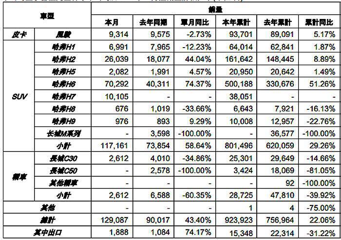 今年前9個(gè)月,長(zhǎng)城汽車取得58.66萬(wàn)輛的銷量成績(jī),其中哈弗品牌共銷售44.94萬(wàn)輛。2016年11月,哈弗H6銷量高達(dá)70292輛,同比增長(zhǎng)74.37%;本年累計(jì)銷量500188輛,同比增長(zhǎng)51.26%。