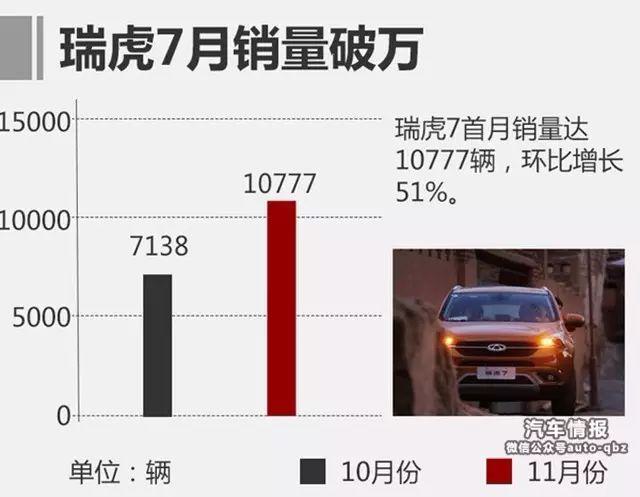 11月份的銷量顯示,奇瑞銷量增長40%,瑞虎7銷量也輕松破萬,達(dá)10777輛,環(huán)比增長51%(10月份銷量為7138輛)。毫無疑問,銷量瞬間破萬的瑞虎7正是奇瑞2.0時代、堅守正向研發(fā)之路的最佳縮影。