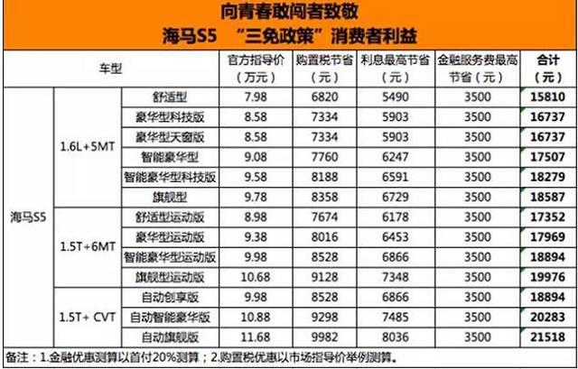 享受到海馬S5的“三免鉅惠補貼”