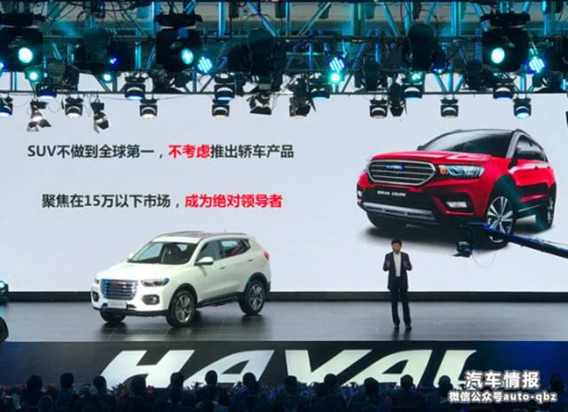 而在“哈弗百萬、冠軍榮耀”晚會盛典上,面對1000多名媒體和經(jīng)銷商代表,魏建軍再次闡明了自己的觀點(diǎn):SUV不做到全球第一,不考慮推出轎車產(chǎn)品。同時還喊出了“聚焦在15萬以下市場,成為絕對領(lǐng)導(dǎo)者”的口號,充分顯示了魏派作風(fēng)的自信和霸氣。