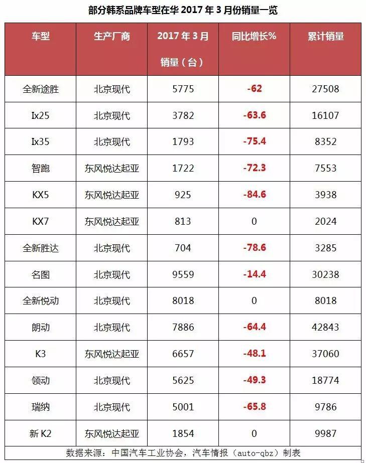 從中國汽車工業(yè)協(xié)會公布的權(quán)威數(shù)據(jù)來看,韓系車的下滑是全方面的,近乎腰斬式的,以北京現(xiàn)代為例,其從2016年12月份還算說得過去的146008臺一路跌到2017年3月份的56026臺,下滑幅度高達61.6%。