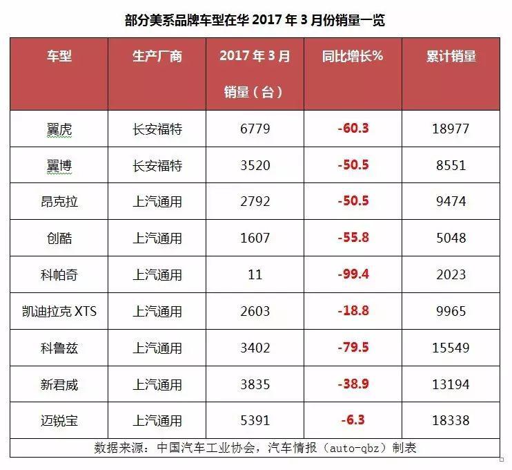 與韓系車的節(jié)節(jié)衰退相比,美系車的強勢地位也在逐步顯現(xiàn)。統(tǒng)計2017年3月份SUV市場中下滑超過50%的車型來看,長安福特翼虎、翼博,上汽通用昂克拉、創(chuàng)酷和科帕奇五位小伙伴攜手入選。而轎車市場上,除了全新英朗、福睿斯1.5L和科沃茲擠進前20外,再難覓美系車身影,曾經(jīng)的王牌B級車君威更是尷尬,3月份竟然只有3835臺銷量進賬,同比下浮達38.9%,讓人大跌眼鏡。