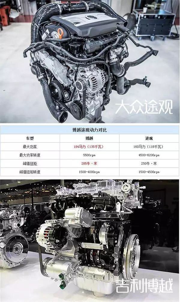 從核心技術(shù)發(fā)動(dòng)機(jī)來看,博越搭載自主研發(fā)的1.8TD發(fā)動(dòng)機(jī),采用渦輪增壓缸內(nèi)直噴技術(shù),135kW/5500rpm的最高功率和285Nm/1500rpm的最大扭矩,性超過途觀1.8TSI一大截。