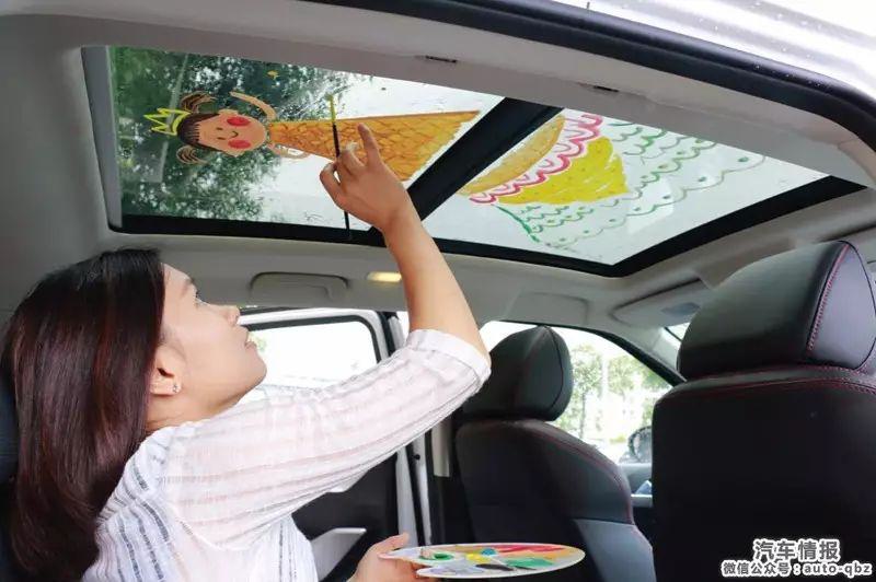除此之外,天窗還是一個(gè)快捷除霧的神器,特別是在夏秋兩季,雨水多,濕差大,如果行車過(guò)程中將車的側(cè)窗緊閉,就會(huì)增大車內(nèi)外溫差,前風(fēng)擋玻璃容易形成霧氣。車主只需要打開(kāi)天窗便可快捷消除前風(fēng)擋的霧氣,保證行車安全。不過(guò),如果你認(rèn)為汽車的天窗就只有這么點(diǎn)功能的話,那就圖樣圖森破了。最近,廣州一位媽媽在網(wǎng)絡(luò)走紅。走紅的原因是,前一陣子,她遇到了幾乎所有寶媽寶爸都會(huì)遇到的問(wèn)題——寶寶哭著不上幼兒園??粗畠罕焕蠋煄ё邥r(shí)哭的撕心裂肺,心疼不已的媽媽做了一點(diǎn)微小卻偉大的事,她在汽車天窗上連續(xù)作畫,棉花糖云彩、誘人的熱狗蔥花面條、會(huì)說(shuō)話的電器和哈爾的移動(dòng)城堡等美作,然后在送女兒上學(xué)的路上講故事,女兒在去幼兒園的路上就不哭鬧了。