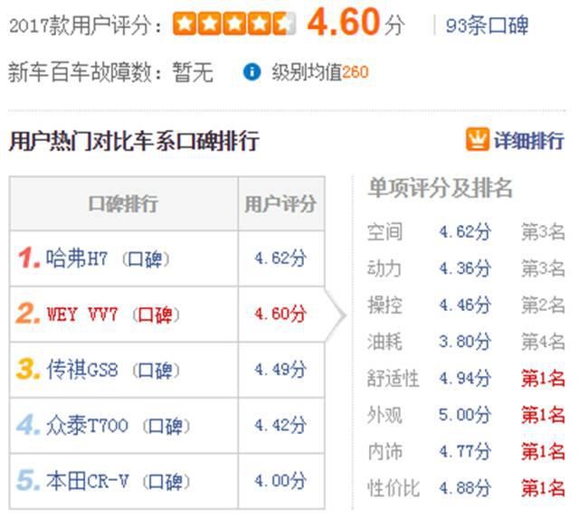 反觀WYE VV7,意料之外,這樣一個(gè)新品牌新產(chǎn)品,竟然在汽車之家上擁有相當(dāng)好的用戶口碑!本以為不會(huì)有多少人買,卻在論壇上看到不少提車帖子,都是某某城市首提,而且這股“城市首提”風(fēng)潮還在加速持續(xù)進(jìn)行中。又是意料之中,WEY的產(chǎn)品實(shí)力是有目共睹的,前不久VV7還成功挑戰(zhàn)了美國(guó)最嚴(yán)苛的安全測(cè)試,25%小重疊碰撞,成為中國(guó)品牌的驕傲。