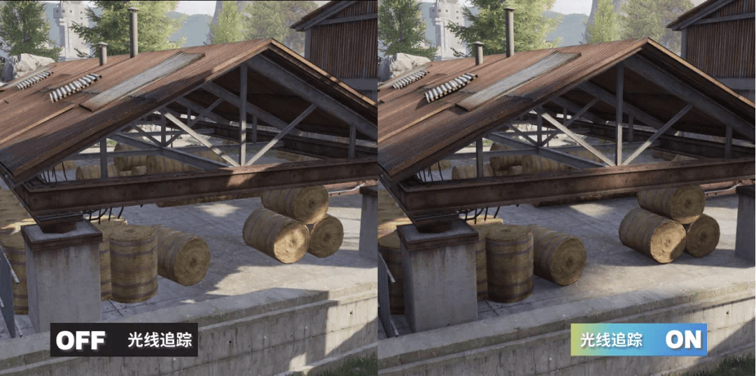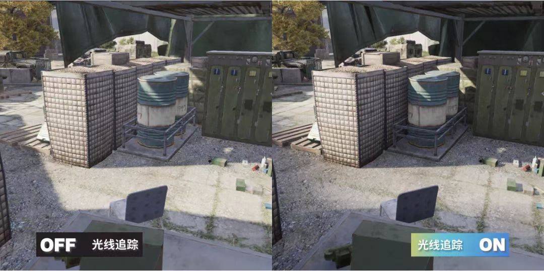 在《暗區(qū)突圍》游戲中的實際應(yīng)用上,在游戲環(huán)境的陰影效果方面,室外的光線追蹤陰影能夠模擬真實的太陽光陰影形態(tài),近處的陰影銳利,遠處的陰影柔和?;诠饩€追蹤的環(huán)境光遮蔽,能夠體現(xiàn)出相交物體間的漫反射光線遮擋效果,進而強調(diào)出物體間的擺放關(guān)系,讓畫面更有層次感。相較于傳統(tǒng)的環(huán)境光遮蔽技術(shù),基于光線追蹤的環(huán)境光遮蔽,由于可以獲取到準確的場景信息,其能夠更加精準地體現(xiàn)物體間的環(huán)境光遮蔽關(guān)系,避免傳統(tǒng)技術(shù)中的黑暈等現(xiàn)象出現(xiàn)。更好的優(yōu)化了玩家在游戲地圖中的真實體驗感。以高度還原自然光的品質(zhì)為玩家提供更身臨其境的戰(zhàn)局感。