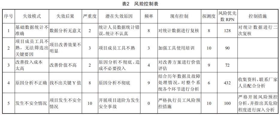對本改善項目進行風險分析,提出風險控制措施。風險控制表如表2所示。