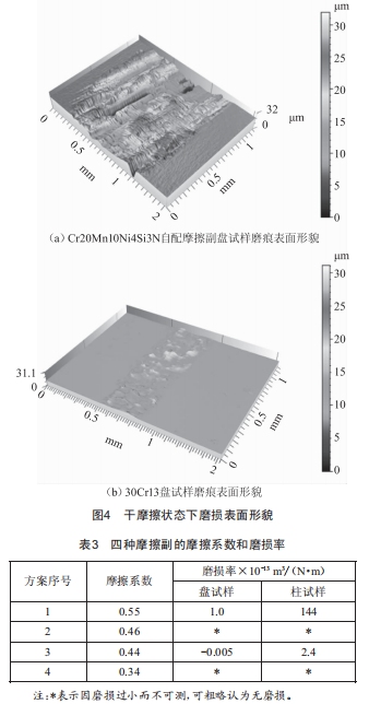 摩擦副的摩擦學(xué)性能優(yōu)于Cr20Mn10Ni4si3N自配摩擦副的摩擦學(xué)性能: