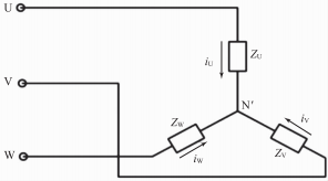 圖3三相對稱負(fù)載的Y形連接