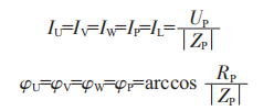 如果ZU=Z==Zw=ZP,則該負(fù)載稱為對稱三相負(fù)載,此時(shí):