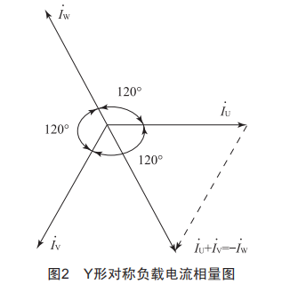 每相電流的大小、相電流與相電壓的相位差均相同,各負(fù)載中的相電流是對稱的。若以iU為參考相量,相電流相量關(guān)系如圖2所示。