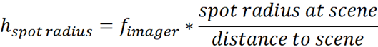 假設(shè)觀察到的最小光斑對(duì)應(yīng)從光源陣列發(fā)射出來(lái)最中心點(diǎn)光源的結(jié)果。因此,我們可以將中心視場(chǎng)點(diǎn)的 RMS 半徑設(shè)置為 2.089 毫米,并得到探測(cè)器上成像的光斑的最終尺寸: