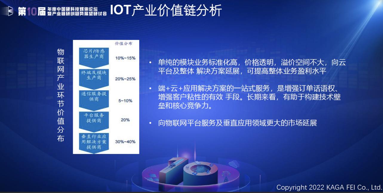 加賀富儀艾電子于2021年收購了太陽誘電的無線產(chǎn)品和技術(shù),投身于IoT無線連接領(lǐng)域。作為后來者,如何能夠博出位、博出彩?在EEVIA舉辦的第十屆年度中國硬科技媒體論壇上,加賀富儀艾電子的產(chǎn)品管理部總監(jiān)杜復旦先生,發(fā)表了名為《IoT應用市場和全鏈無線模塊發(fā)展趨勢》的演講,和記者分享了IoT市場的前景,并對無線模塊的發(fā)展趨勢進行了展望。