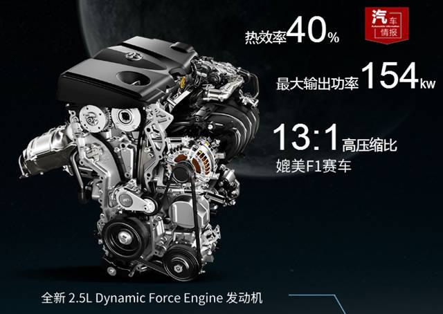 發(fā)動機則是全新2.5L Dynamic Force自吸混合噴射發(fā)動機,最大輸出功率154kW/6600rpm,最大扭矩250Nm/5000rpm,百公里油耗僅為6L,保障動力充沛的同時又很好的兼顧了經(jīng)濟性;全新的8AT變速箱比DSG更高效、比CVT更平順、比MT更省油,可以將發(fā)動機的最大功率和扭矩分別提升14.1%以及6.4%,但油耗卻降低14.3%。2.0L版本的第八代凱美瑞,其油耗也降低了6%。第八代凱美瑞雙擎上的A25A發(fā)動機,在配合混動系統(tǒng)下,熱效率能達到驚人的41%!