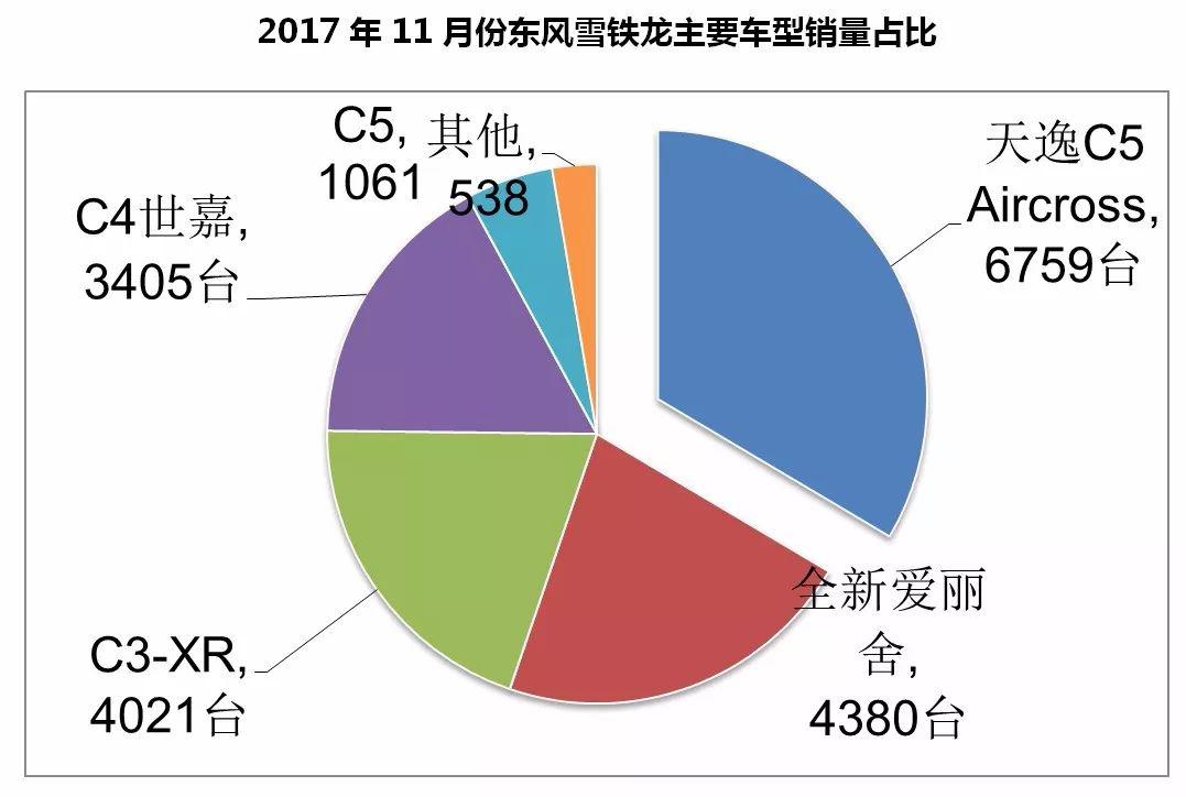 不過,東風(fēng)雪鐵龍的2017年并非全部都是失敗,天逸C5 Aircross這款SUV的星光熠熠倒是讓其重拾信心。從下表來看,在11月份的份車型銷量構(gòu)成上,天逸C5 Aircross已經(jīng)占據(jù)了33.52%的銷售份額,也正是在這款車的帶動之下,東風(fēng)雪鐵龍的銷量才能止住2017年上半年的頹勢,開啟增長之路。