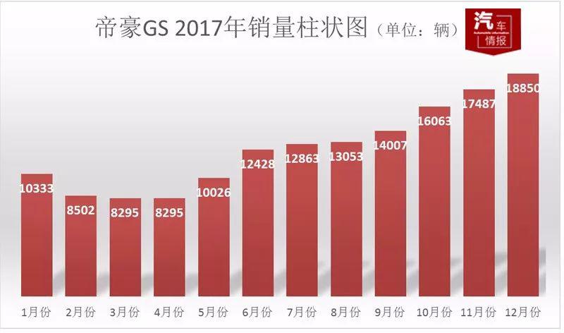 數(shù)據(jù)顯示,在剛剛過去的2017年12月份,帝豪GS拿下18850臺銷量,創(chuàng)造上市以來歷史新高,全年累計(jì)銷量也來到了150584輛,這也意味著自2016年5月4日上市以來,帝豪GS在20個月時間里累計(jì)總銷量成功突破20萬輛,月均銷量保持過萬勢頭。與此同時,帝豪GS的給力表現(xiàn),更是助力吉利汽車在2017年車市寒流中逆勢飛揚(yáng),以全年1247116萬臺銷量,同比增長63%的傲人數(shù)據(jù)坐穩(wěn)中國汽車品牌銷量排行榜冠軍寶座。