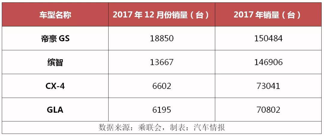 尤其值得一提的是,帝豪GS的優(yōu)異表現(xiàn)讓諸多合資甚至豪華品牌“恐慌”。如下表所示,在本田繽智、馬自達(dá)CX-4以及奔馳GLA的銷量PK中,帝豪GS均實(shí)現(xiàn)了大幅超越,成為了跨界SUV市場中當(dāng)之無愧的領(lǐng)軍車型。