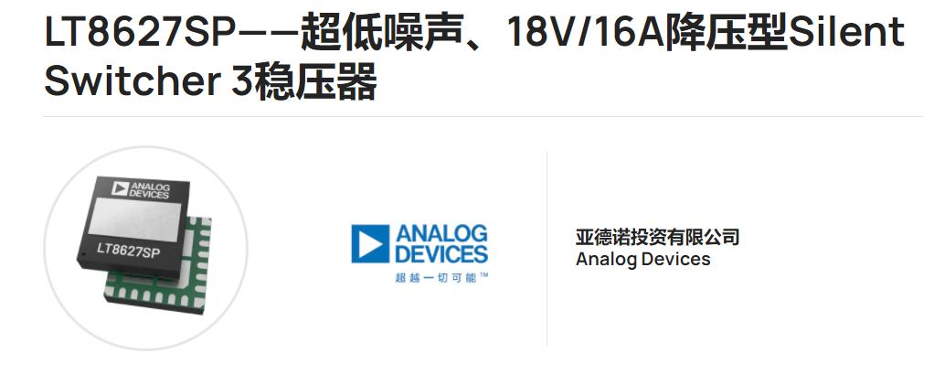 2022年11月21日,第二十屆TOP10 POWER電源產品獎結果揭曉,ADI公司的Silent Switcher3同步降壓穩(wěn)壓器——LT8627SP,從眾多參評產品中脫穎而出榮獲TOP10 POWER電源產品獎。