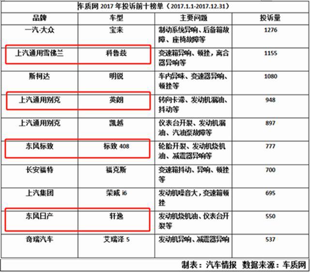 根據(jù)國內(nèi)兩大權(quán)威汽車投訴網(wǎng)站——車質(zhì)網(wǎng)和汽車投訴網(wǎng)公布的投訴榜單顯示,2017年全年,合資車型幾乎統(tǒng)治了投訴榜前十名榜單。而且,讓人不可原諒的是,科魯茲、英朗、標(biāo)致408、軒逸這四款車,不僅出現(xiàn)在了2017年的年投訴榜單前十名中,在2018年至今的投訴榜中同樣“榜上有名”。因此,不把這幾款車拿出來吊打一下,恐怕還真的沒法平民憤。