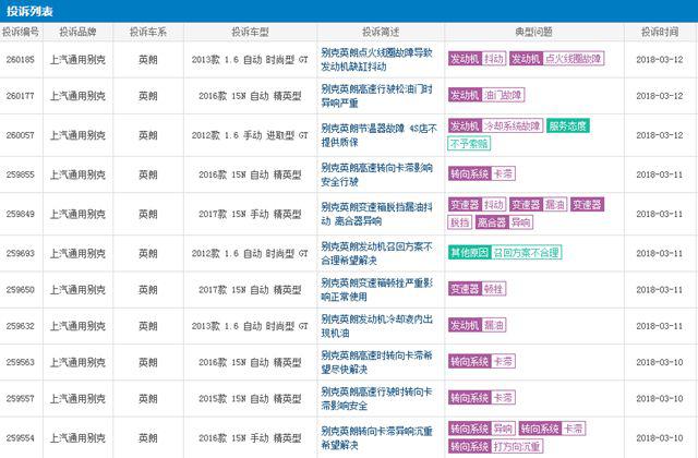 英朗是在別克“全球平臺、全系全優(yōu)”戰(zhàn)略背景下誕生的一款主流轎車,自上市以后憑借好看的設(shè)計和創(chuàng)新高效技術(shù)吸引了不少消費者的青睞,但這款車的質(zhì)量投訴卻居高不下,在車質(zhì)網(wǎng)上,2017年盈利的投訴量達到九百多條,發(fā)動機、轉(zhuǎn)向系統(tǒng)等成為其主要投訴點。