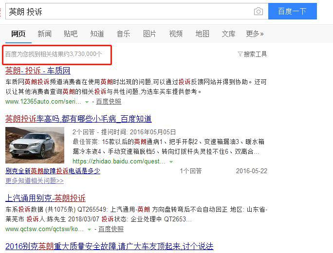 此外,針對英朗的投訴問題,百度給出的相關(guān)搜索竟高達300多萬個,反應(yīng)的問題多種多樣,五花八門,其中在發(fā)動機、變速箱以及車身附件及電氣三個方面的投訴最多,充分說明了廠家的質(zhì)檢存在嚴(yán)重的問題。