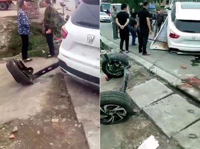 除此之外,近日,還有一組寶駿510兩個(gè)后輪直接脫離車身的照片在網(wǎng)上流出,不知道是何原因,但能看到的是這臺(tái)510的后扭力梁懸掛直接被擰成了麻花狀,油液灑落一地,現(xiàn)場(chǎng)及其狼狽。