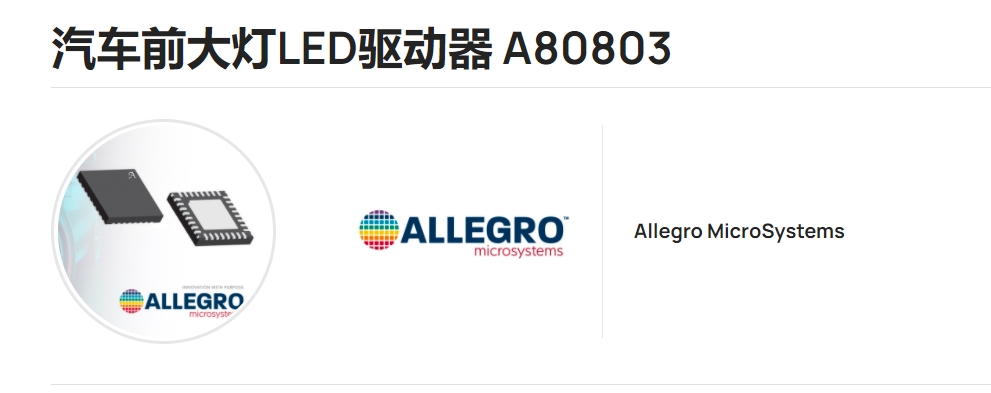 Allegro MicroSystems 汽車前大燈LED驅動器“A80803”榮獲2022年第二十屆TOP10 POWER最佳應用獎
