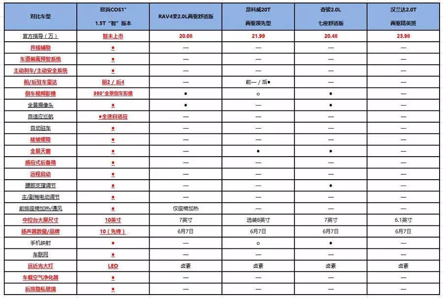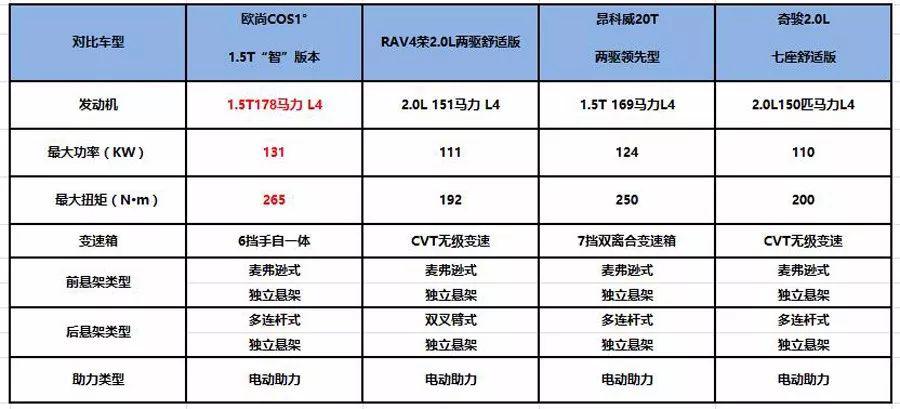 既然是產(chǎn)品向上具備較高質(zhì)價(jià)比,沖擊合資SUV的車型,不比較比較就說不過去了。目前市面上20萬左右的主流合資SUV以奇駿、昂科威、RAV4榮放等為主,但是由于這些車型價(jià)格虛高,20萬左右的價(jià)格只能入手一款入門版車型,無法讓消費(fèi)者真正的滿意。如此一來就給了歐尚COS1°很大的市場(chǎng)空間。那么,歐尚COS1°有能力與之抗衡嗎?