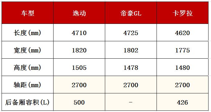 從空間角度來看,在三款車的軸距相同情況下,高度和寬度就是最能影響乘坐舒適性的參數(shù),這兩個(gè)數(shù)據(jù)逸動都比帝豪GL和卡羅拉有明顯優(yōu)勢,也就意味著坐在后排的人頭部空間不會太有壓抑感,橫向空間坐三個(gè)人也不會覺得擠。而后備廂容積對比上,帝豪GL官方并沒提供數(shù)據(jù),而逸動500L的容積比卡羅拉整整多74L,這對空間需求旺盛的消費(fèi)者,實(shí)在太有吸引力了。