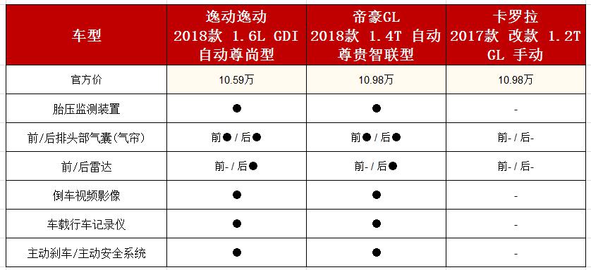 安全性上,三款車除了常見的ABS+EBD+ESP等安全配置外,逸動和帝豪GL還比卡羅拉多出胎壓監(jiān)測、前/后排頭部氣囊、后車?yán)走_(dá)、倒車影像、車載行車記錄儀、主動剎車。