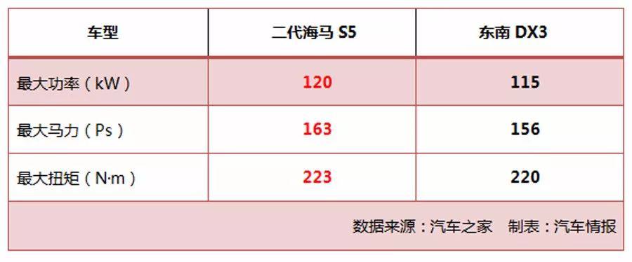 這樣的動力系統(tǒng)可謂是完全滿足了年輕消費(fèi)者的需求,單從數(shù)據(jù)來看,在同價格之下,二代海馬S5在動力方面,比帝豪GS、東南DX3、遠(yuǎn)景SUV等眾多車型都要出色很多。以東南DX3來說,同樣是搭載了1.5T渦輪增壓發(fā)動機(jī),然而二代海馬S5在數(shù)據(jù)上就要略高于東南DX3。