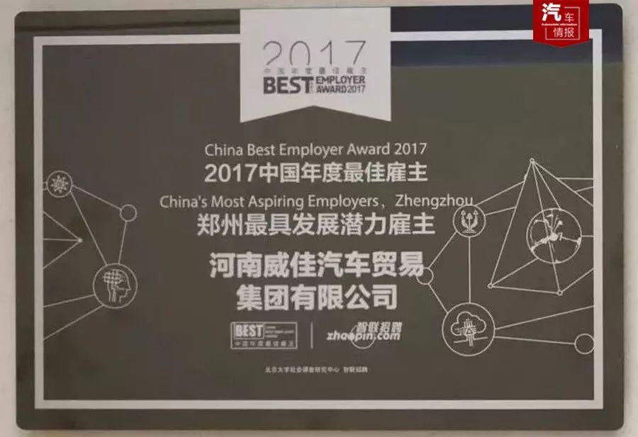 正是因為此,在由智聯(lián)招聘與北京大學企業(yè)社會責任與雇主品牌傳播研究中心聯(lián)合舉辦的“2017年度中國最佳雇主”評選中,威佳集團當之無愧榮膺“中國年度最佳雇主-鄭州最具發(fā)展?jié)摿椭鳌薄?/span>
