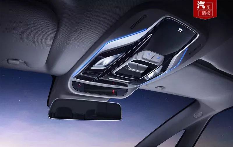 位于駕駛者右上方的車頂控制區(qū)域,設(shè)置了炫酷手勢(shì)感應(yīng)頂燈,可通過手部在燈罩附近移動(dòng)開閉頂燈,彰顯出整車濃厚的智能科技氛圍。