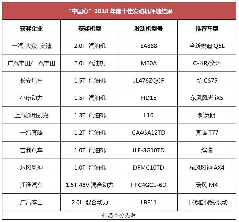 說起優(yōu)秀發(fā)動(dòng)機(jī),想必各位首先想到的就是沃德十佳發(fā)動(dòng)機(jī)!沒錯(cuò),這份榜單一直都是發(fā)動(dòng)機(jī)技術(shù)的風(fēng)向標(biāo),且權(quán)威性強(qiáng),不少消費(fèi)者就是看了這份榜單后才下單買車的。但實(shí)事求是的講,沃德十佳發(fā)動(dòng)機(jī)的測(cè)試車型都是在美國(guó)本土銷售,和我們的現(xiàn)實(shí)購(gòu)車需求有不小的差異。也正因此,“中國(guó)心”年度十佳發(fā)動(dòng)機(jī)獎(jiǎng)項(xiàng)無疑更具參考價(jià)值。而且,專業(yè)性和權(quán)威性相比“沃德”都不遜色。近日,“中國(guó)心”2018年度十佳發(fā)動(dòng)機(jī)正式揭曉,令人振奮的是,上榜的中國(guó)品牌發(fā)動(dòng)機(jī)超過半數(shù),占到了六席。不得不說,這些年,中國(guó)品牌確實(shí)有了質(zhì)的變化,在與外資品牌的競(jìng)爭(zhēng)中優(yōu)勢(shì)也愈發(fā)明顯了。