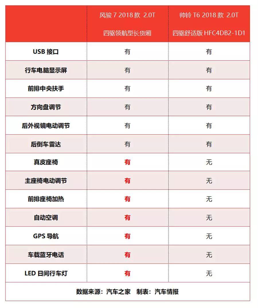 這不,前兩天就有朋友詢問小編:準(zhǔn)備入手一輛皮卡,想從帥鈴T6和剛剛上市的長城風(fēng)駿7之中進(jìn)行挑選,不知道這兩款車選誰更為合適?對此,小編選出指導(dǎo)售價11.78萬元的風(fēng)駿7 2018款 2.0T四驅(qū)領(lǐng)航型長貨廂(下文簡稱風(fēng)駿7)和同樣11.78萬元售價的帥鈴T6 2018款 2.0T四驅(qū)舒適版HFC4DB2-1D1(下文簡稱帥鈴T6),來一番真槍實彈的對比,看看誰更優(yōu)秀。