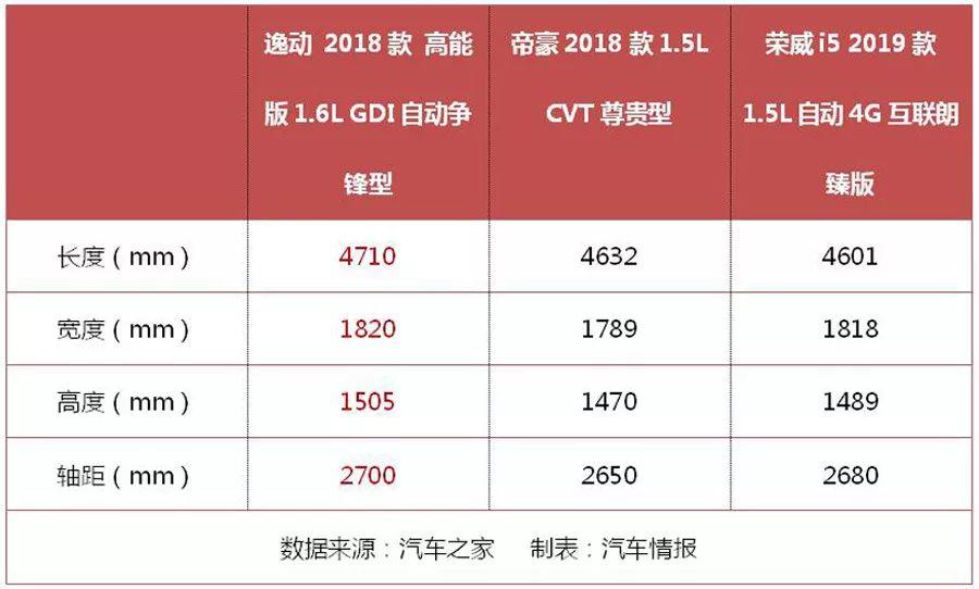通過直觀的數(shù)據(jù)對比可以看出,首先在車身“三圍”上,逸動就達(dá)到了三者最優(yōu)。尤其是在車身長度方面,比榮威i5高出了109mm,比帝豪也要高出78mm,若表現(xiàn)在視覺效果上,無疑比其余二者“大了一圈”;同時(shí),在車身高度方面,三者也有著明顯的差別,唯有逸動超出了1500mm,而這,對于一些身材高大的朋友來說,無疑是個(gè)好消息。