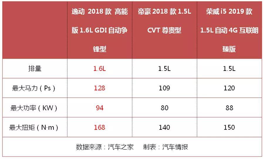 通過上述表格可以明顯看出,無論在最大馬力、最大功率,還是最大扭矩上,逸動都要比帝豪和榮威i5有優(yōu)勢。放在實(shí)際駕駛中,意味著其將會比帝豪和榮威i5有更加暢快的感受。