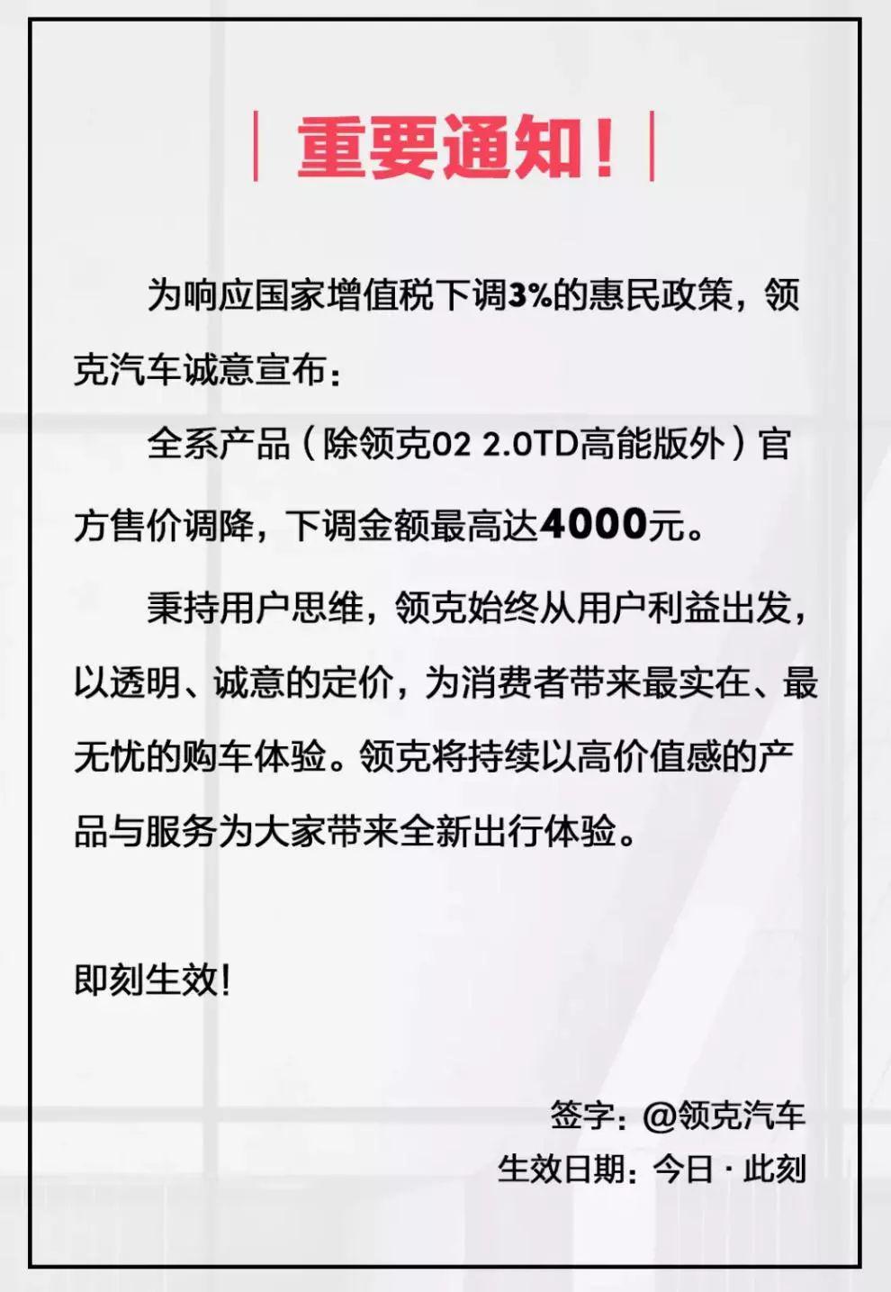 結(jié)語:毫無疑問,關(guān)于增值稅改革后的官降,汽車行業(yè)是反應(yīng)最快的行業(yè)。而降價對消費者來說,的確是件利大于弊的好事兒。但凡事總有兩面性。積極配合的背后,與其套路滿滿,到最后“人設(shè)崩塌”,倒不如像領(lǐng)克一樣,踏踏實實的從一開始就一步到位,你說呢?